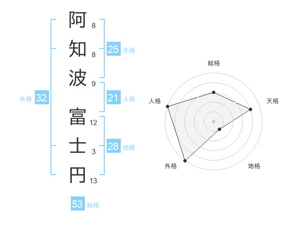 阿知波 富士円さんを姓名の画数から五運を鑑定