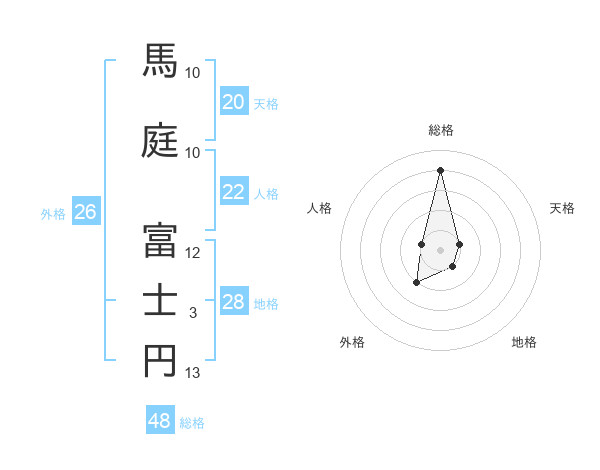 馬庭 富士円さんの総格は48画の4点!