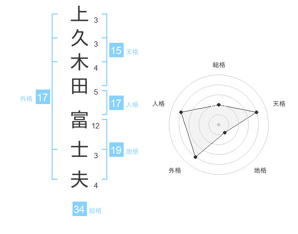 上久木田 富士夫さんを姓名の画数から五運を鑑定