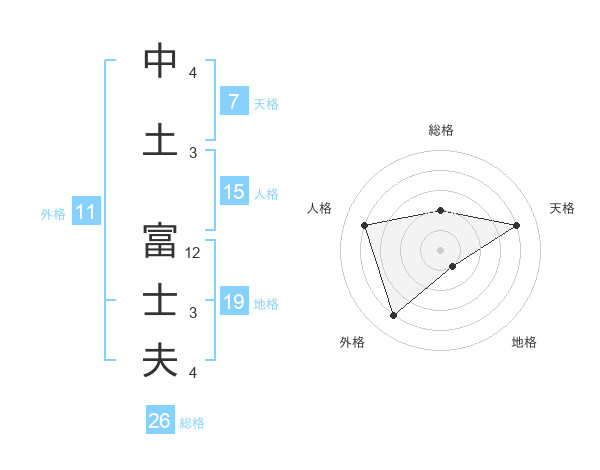 中土 富士夫さんを姓名の画数から五運を鑑定