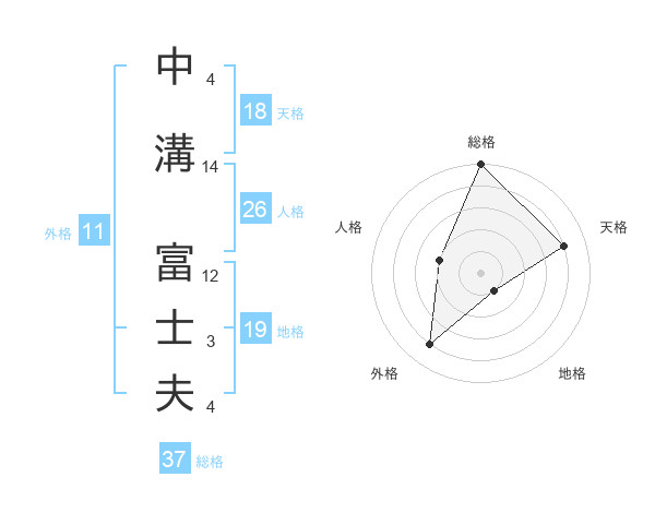 中溝 富士夫さんの総格は37画の5点!