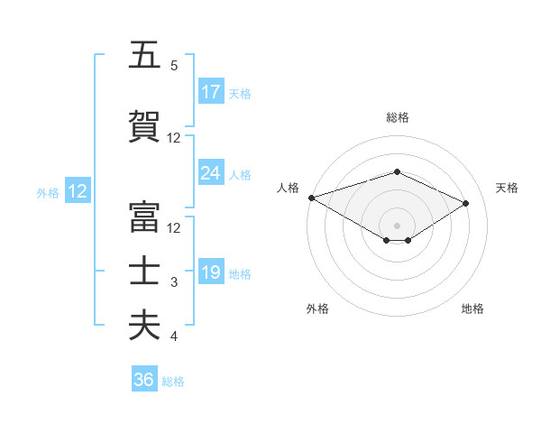 五賀 富士夫さんを姓名の画数から五運を鑑定