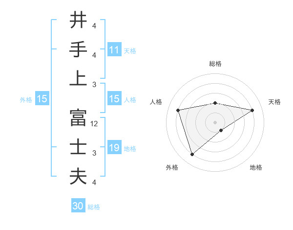 井手上 富士夫さんの総格は30画の2点!
