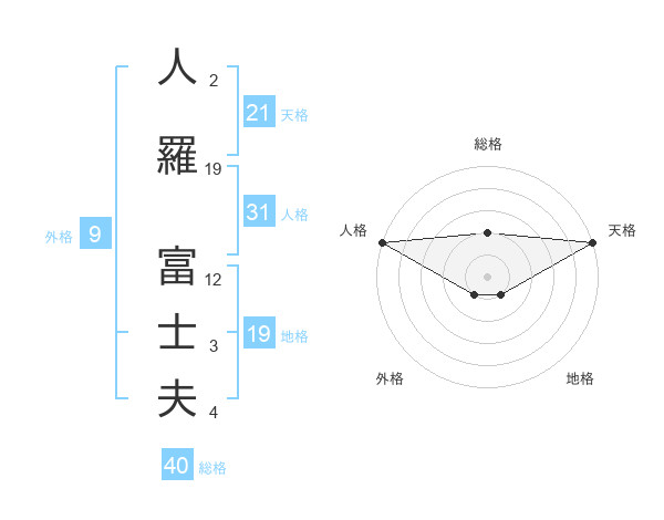 人羅 富士夫さんの天格は21画の5点!
