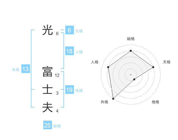 光 富士夫さんの外格は13画の5点!