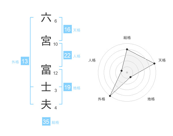 六宮 富士夫さんの総格は35画の4点!