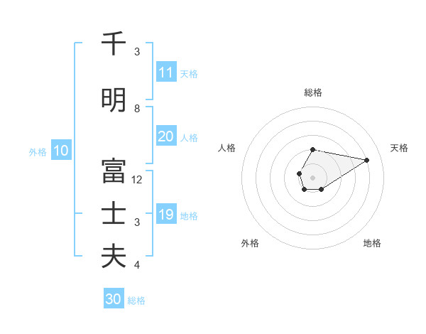 千明 富士夫さんを姓名の画数から五運を鑑定