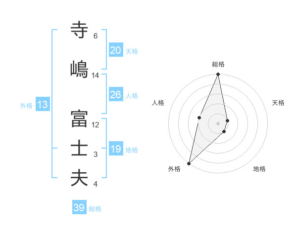 寺嶋 富士夫さんを姓名の画数から五運を鑑定