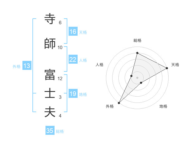 寺師 富士夫さんの外格は13画の5点!