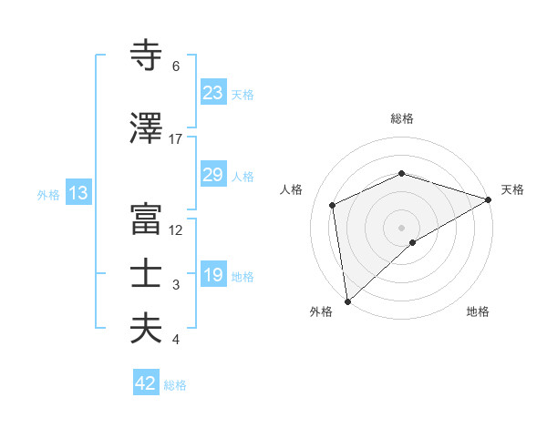 寺澤 富士夫さんを姓名の画数から五運を鑑定