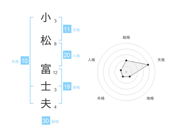 小松 富士夫さんを姓名の画数から五運を鑑定