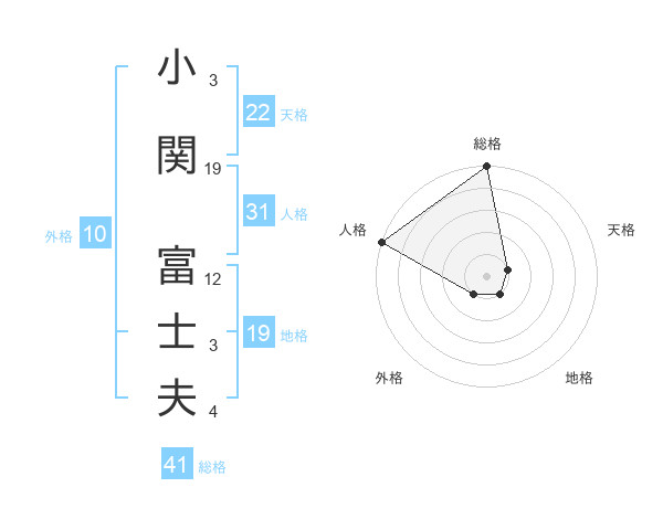 小関 富士夫さんを姓名の画数から五運を鑑定