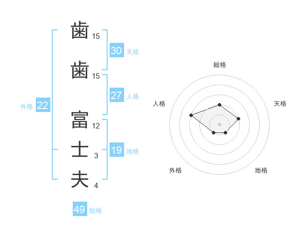 歯歯 富士夫さんの天格は30画の2点!