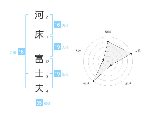 河床 富士夫さんの天格は16画の5点!