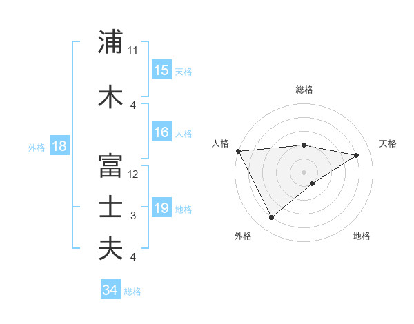 浦木 富士夫さんを姓名の画数から五運を鑑定