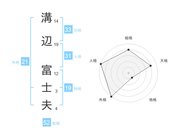 溝辺 富士夫さんを姓名の画数から五運を鑑定