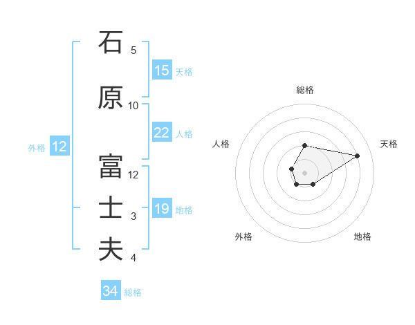 石原 富士夫さんの総格は34画の2点!