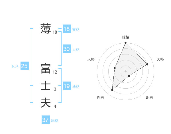 薄 富士夫さんの総格は37画の5点!