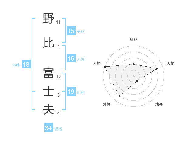野比 富士夫さんの天格は15画の4点!