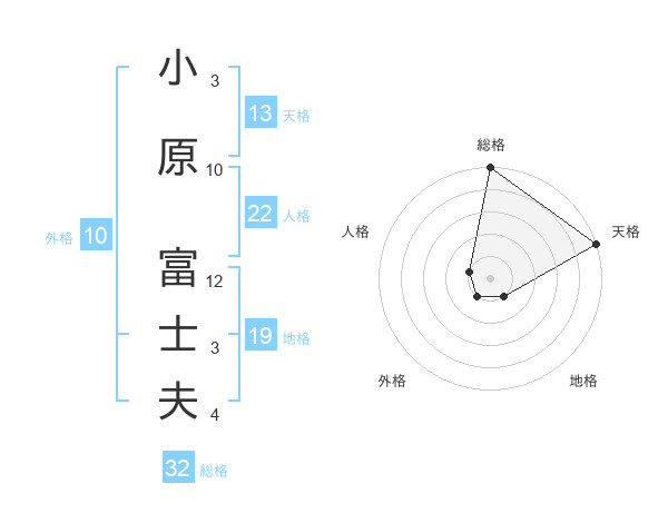 小原 富士夫さんを姓名の画数から五運を鑑定