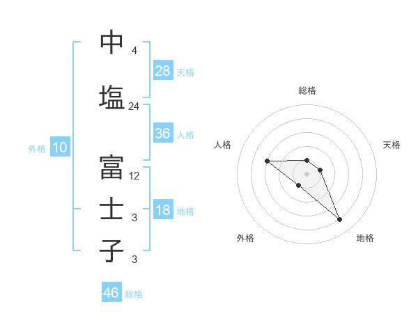 中塩 富士子さんを姓名の画数から五運を鑑定