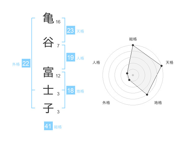 亀谷 富士子さんの外格は22画の1点!