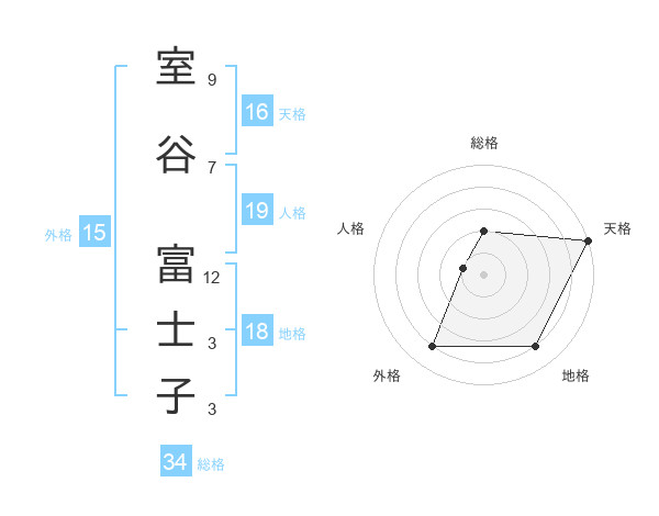 室谷 富士子さんの総格は34画の2点!