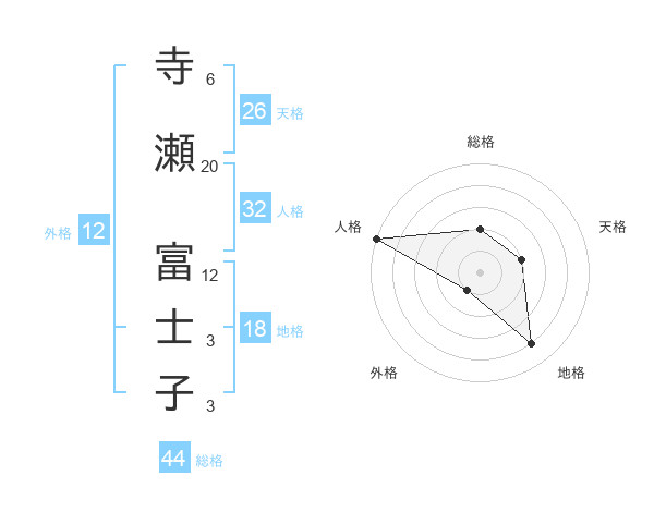 寺瀬 富士子さんの総格は44画の2点!