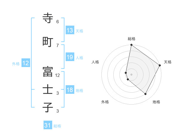 寺町 富士子さんを姓名の画数から五運を鑑定
