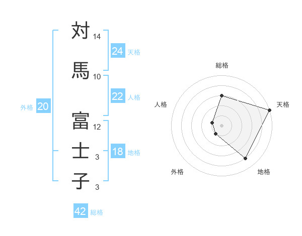 対馬 富士子さんを姓名の画数から五運を鑑定