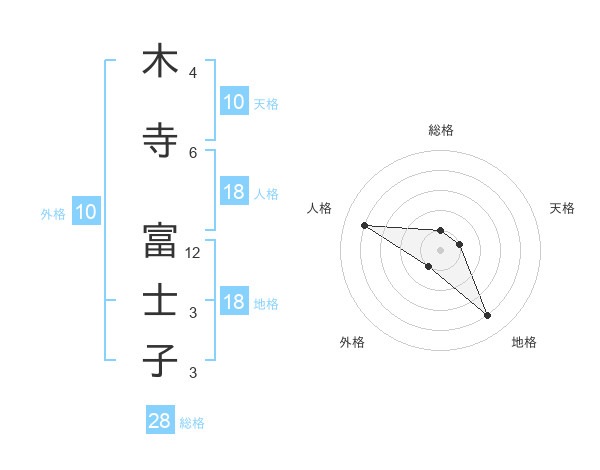 木寺 富士子さんを姓名の画数から五運を鑑定