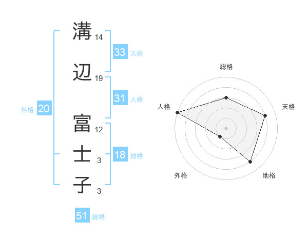 溝辺 富士子さんの総格は51画の3点!