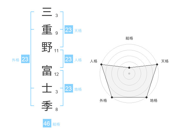 三重野 富士季さんを姓名の画数から五運を鑑定