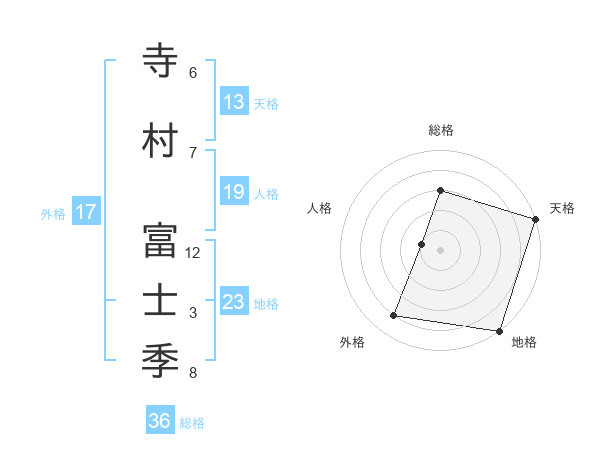 寺村 富士季さんを姓名の画数から五運を鑑定