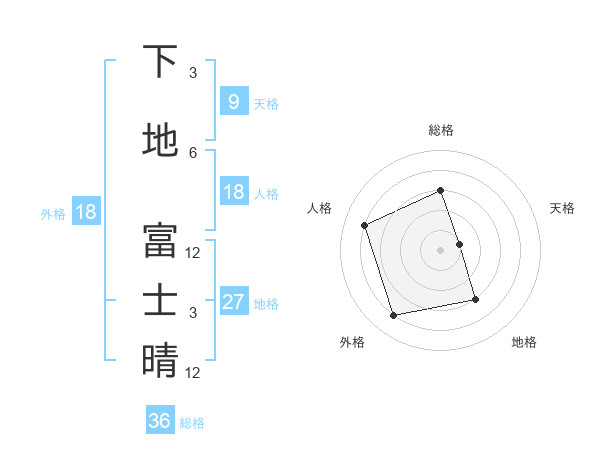 下地 富士晴さんを姓名の画数から五運を鑑定