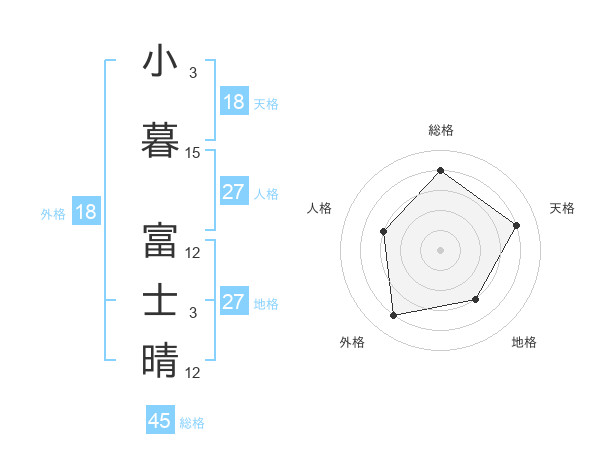 小暮 富士晴さんの地格は27画の3点!