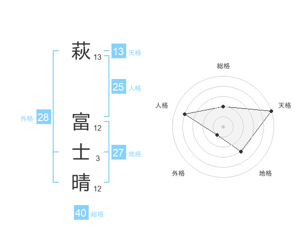 萩 富士晴さんの天格は13画の5点!