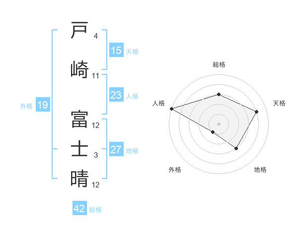 戸崎 富士晴さんの地格は27画の3点!