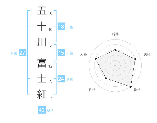 五十川 富士紅さんを姓名の画数から五運を鑑定
