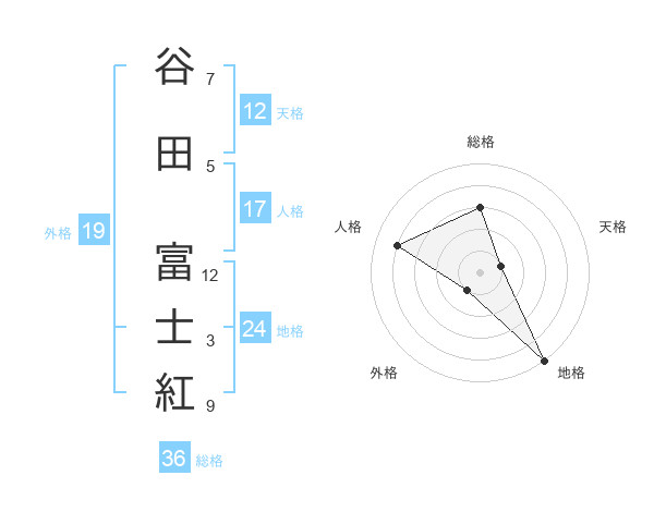 谷田 富士紅さんの地格は24画の5点!