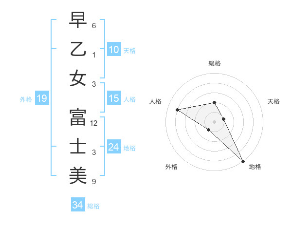 早乙女 富士美さんを姓名の画数から五運を鑑定