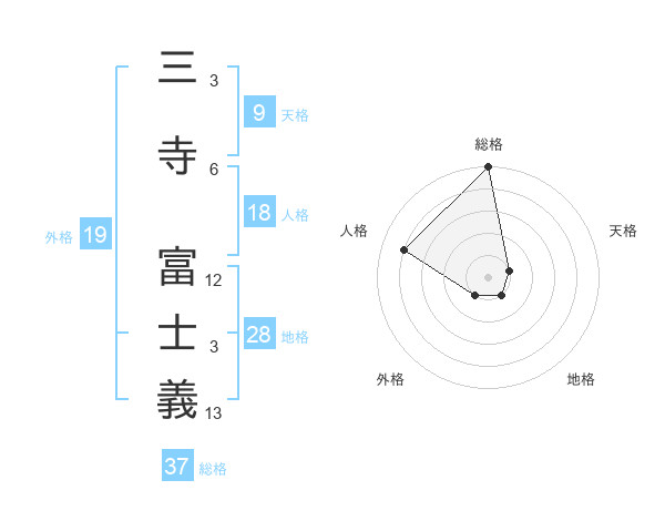 三寺 富士義さんの総格は37画の5点!