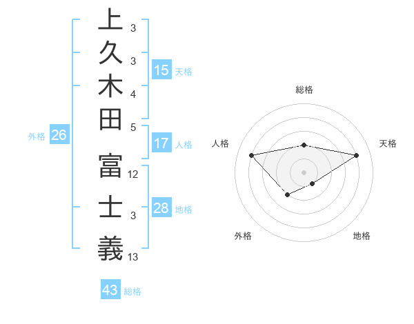 上久木田 富士義さんを姓名の画数から五運を鑑定