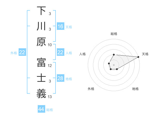 下川原 富士義さんを姓名の画数から五運を鑑定