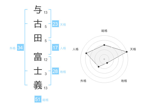 与古田 富士義さんを姓名の画数から五運を鑑定