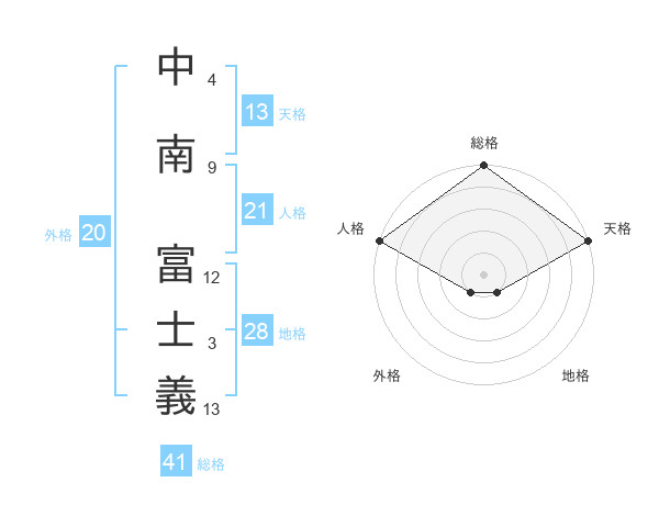 中南 富士義さんの天格は13画の5点!