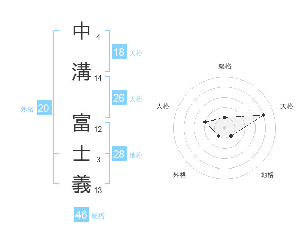 中溝 富士義さんを姓名の画数から五運を鑑定