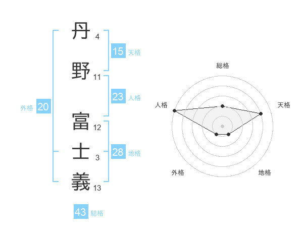 丹野 富士義さんを姓名の画数から五運を鑑定