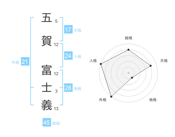 五賀 富士義さんを姓名の画数から五運を鑑定