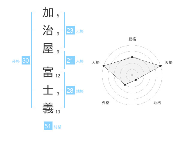 加治屋 富士義さんの総格は51画の3点!
